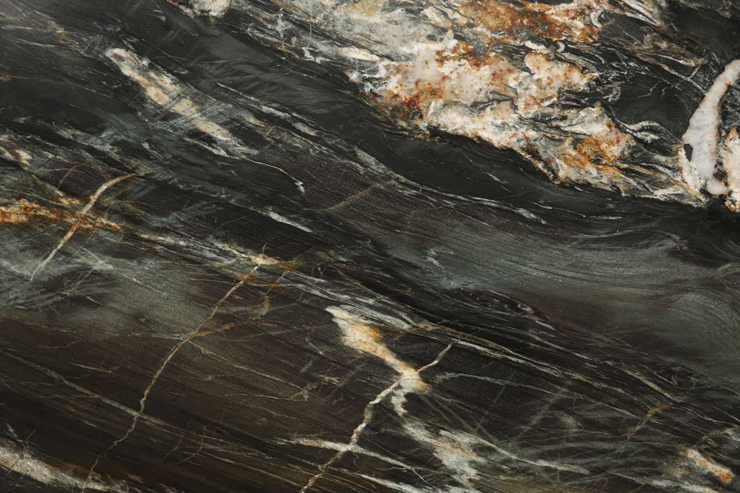 Quartzite is a metamorphic stone formed from sandstone under intense heat and pressure, creating a surface as hard as granite but with the elegant veining often associated with marble.